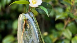 可愛いくて素朴な一輪挿しを見つけました。コロナ禍を機に沢山あった骨董市が激減し、楽しみを奪われていました。偶然立ち寄った近くのお店で見つけた花瓶。凛と咲く侘助を活けてみました。