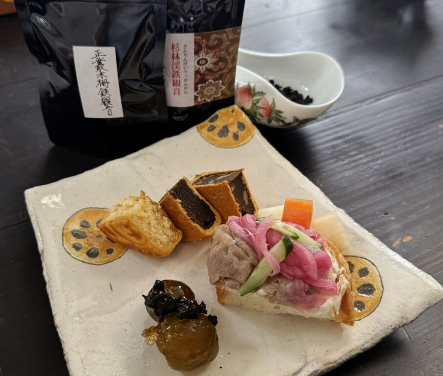 あのうだるような暑さが次第に遠のき秋の気配を感じる頃。焙煎のしっかり効いた台湾の鉄観音茶を味わいました。元々台湾の鉄観音茶は中国本土福建省安渓から渡ってきました。官吏の試験を受けに行った人、張兄弟がが持ち帰りと諸説ありますが、最初に栽培されたのは木柵地区です。木柵鉄観音は台湾を代表するお茶ですが、今回の鉄観音は海抜1800M付近杉林溪で栽培された珍しい高山の鉄観音茶です。2種を飲み比べてみると、どちらも燻焙の香りがしっかりあるものの、喉元を過ぎると濃厚な花の香り残ります。日本のほうじ茶にはない烏龍茶独特の製法によるものです。お茶請に用意されたクリームチーズの肉巻きに五香片をかけてみると、味わい深いチャイナの香りが濃茶にぴったりでした。