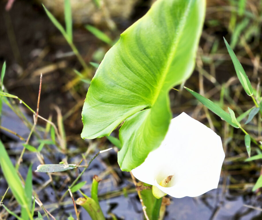 決して秋咲く花ではありません。雑草の茂る溝の中で凛として咲いていました。思わず目を見はった瞬間です。