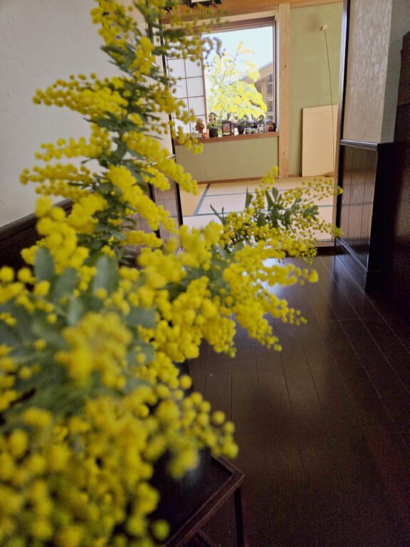 家中が黄色でいっぱいになりました。早春の告げるミモザの花です。