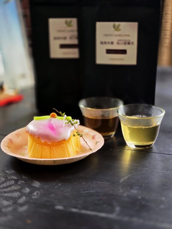 今月は広東省の鳳凰単欉2種の飲み比べです。単欉茶は同じ種類の1本の木から採れる貴重なお茶です。鳳凰単欉密香は単欉茶中でもおなじみですが、もう一つは雪片鴨尿香(せっぺんかもしこう)。このお茶はあまりの美味しさと希少価値から多くの人に提供できず、奇抜な名前にすればスルーする人もあるかとこのような名が付けられたと言う曰く付の単欉茶です。その味はスッキリした中にも甘露に似た上品な旨味と蘭の香りを彷彿させる芳醇な香りが口中に広がります。少し焙煎の強い密蘭香はマスカットのような果物を思わせるフルーティな香りが特徴です。貴重な単欉茶には長崎カステラの上に桃の砂糖菓子の可愛いお茶請。春を満喫しました。