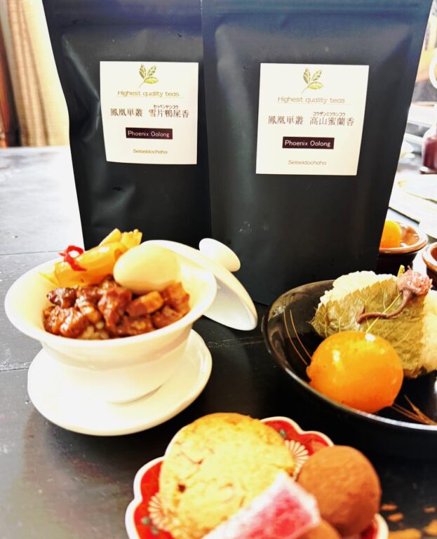 中国のお茶館ではメインがお茶で、お茶請に甘いお菓子を出すことは少なく、稀にドライーフルーツ、干菓子のようなものが出ますが、茶館では丁寧に入れられたお茶を小さな杯で熱いうちに何杯も頂きます。普通の家庭は今はコーヒー、紅茶もありますが、食事時はもっぱらお茶をひたすら飲みます。今回生徒さんが用意されたのは台湾の魯肉飯、甘辛いお肉と八角の香り、それに広東省の鳳凰単欉のすっきりとしたお茶がとても良くマッチング。台湾の(提灯:ランタン)の明かりの下で食べる光景が目に浮かびました。