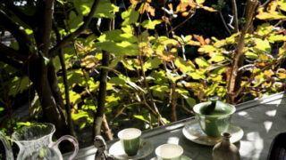 お茶館の午後です。静寂に包まれて、冬の木漏れ日がお茶器を包んでくれています。教室の時の賑わいと今日の静寂。どちらも心安らぐ時です。